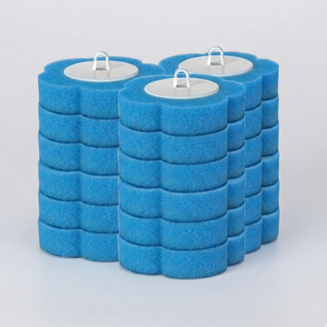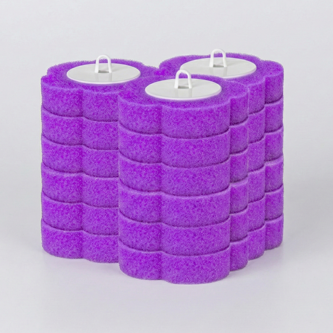 To prevent any risk of plumbing clogs, we recommend disposing of the used sponge heads in the trash can. The "one-click" release button makes it easy to drop them into the bin without touching them.